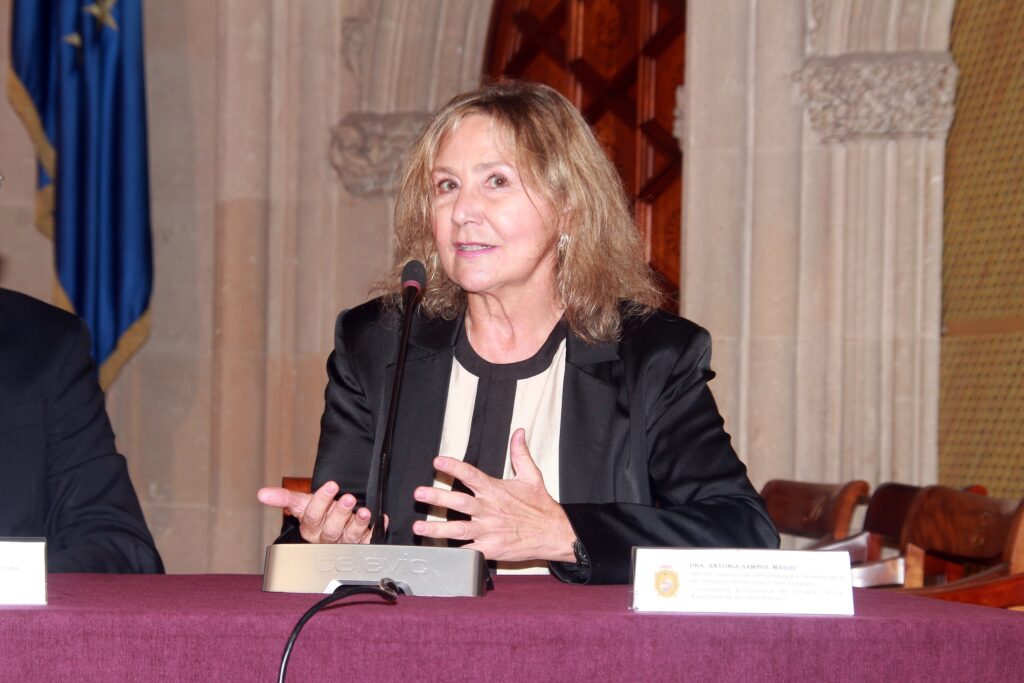 Posteriormente presentó el currículum de la ponente y hizo una breve introducción al tema de la sesión la Dra. Antonia Sampol Mayol, Jefa de Servicio de Hematología y Hemoterapia del Hospital Universitario Son Espases y Coordinadora Autonómica de Terapia Celular Avanzada de les Illes Balears.