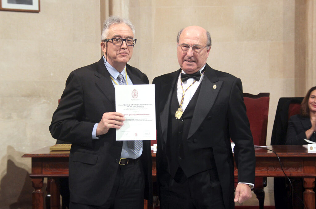 Va fer entrega del premi l’Excm. Sr. Joan Besalduch Vidal al Sr. Alonso el president de la Reial Acadèmia de Medicina de les Illes Balears.